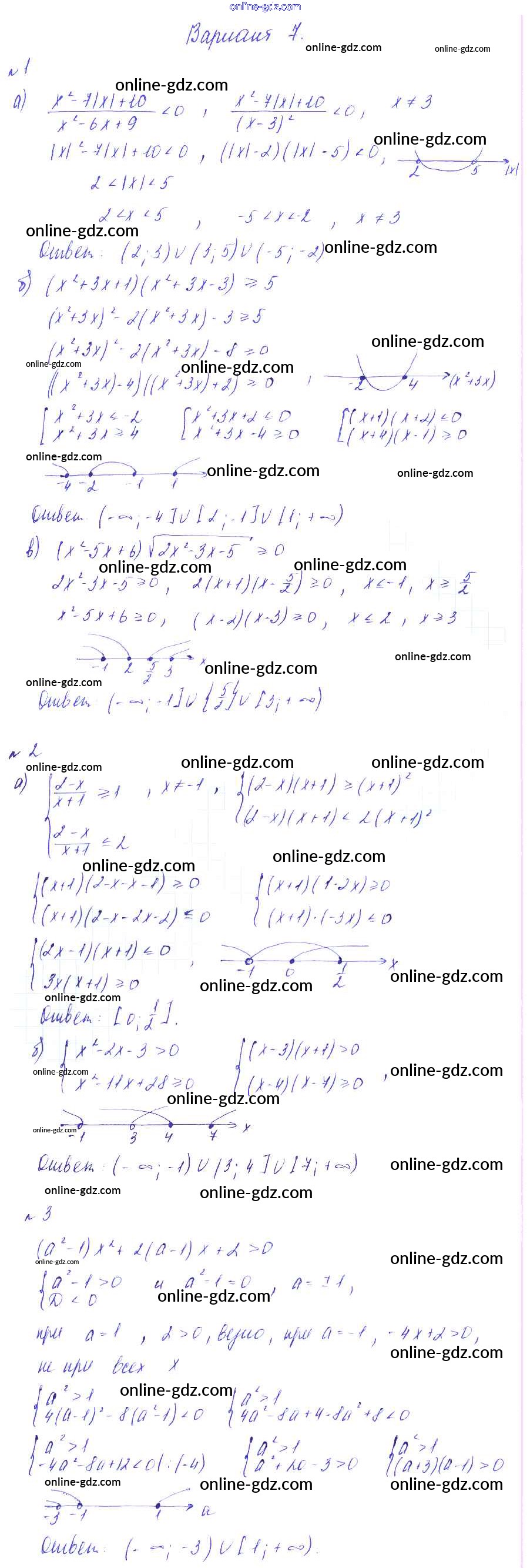 Готовые домашние задания по Алгебре за 8 класс Дидактические материалы Зив, Гольдич 2012 - СР №16. Метод интервалов Самостоятельные работы Вариант-7