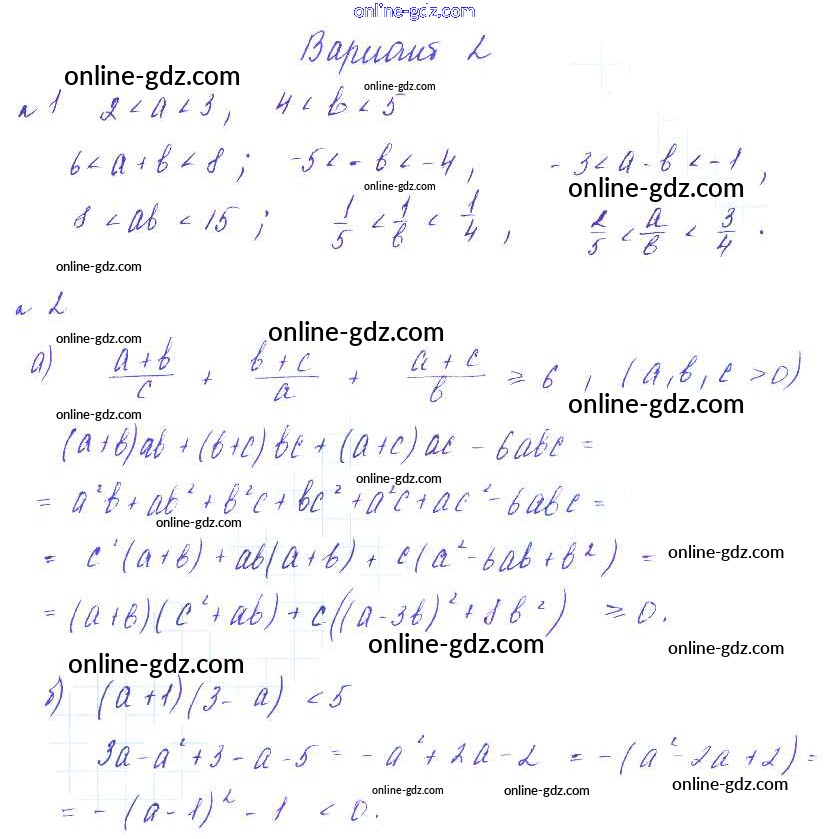 Готовые домашние задания по Алгебре за 8 класс Дидактические материалы Зив, Гольдич 2012 - СР №2. Свойства числовых неравенств. Сложение и умножение неравенств Самостоятельные работы Вариант-2