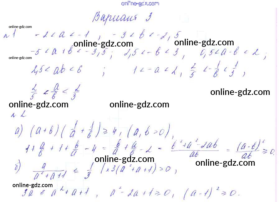Готовые домашние задания по Алгебре за 8 класс Дидактические материалы Зив, Гольдич 2012 - СР №2. Свойства числовых неравенств. Сложение и умножение неравенств Самостоятельные работы Вариант-3