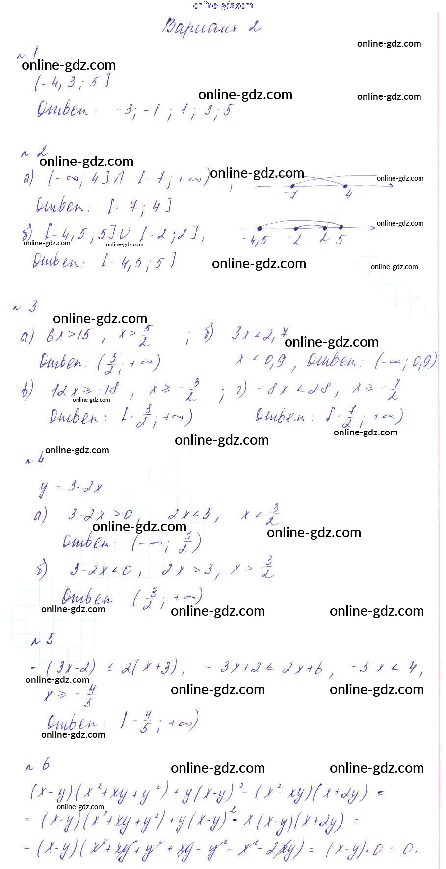 Готовые домашние задания по Алгебре за 8 класс Дидактические материалы Зив, Гольдич 2012 - СР №3. Решение неравенств. Числовые промежутки Самостоятельные работы Вариант-2