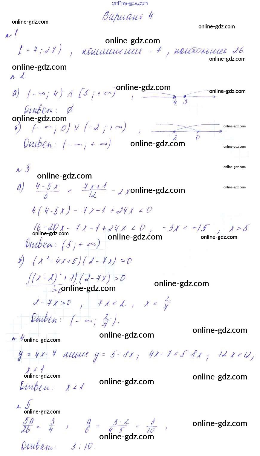 Готовые домашние задания по Алгебре за 8 класс Дидактические материалы Зив, Гольдич 2012 - СР №3. Решение неравенств. Числовые промежутки Самостоятельные работы Вариант-4