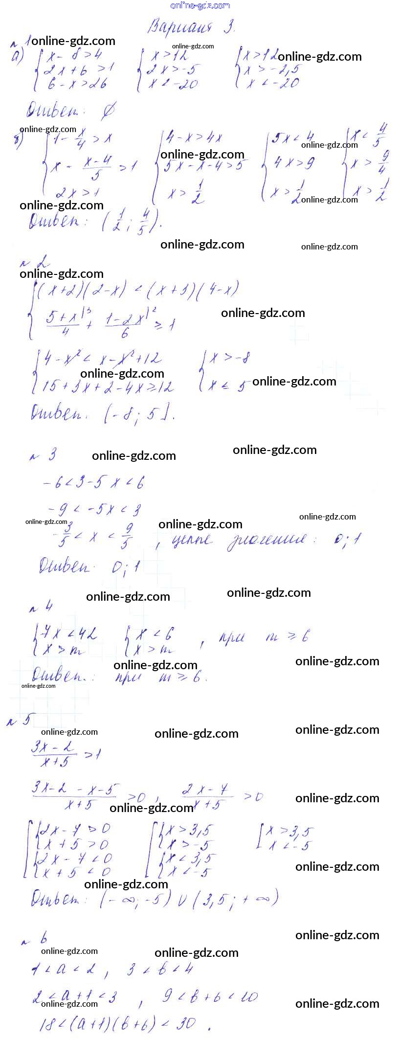 Готовые домашние задания по Алгебре за 8 класс Дидактические материалы Зив, Гольдич 2012 - СР №4. Системы неравенств Самостоятельные работы Вариант-3