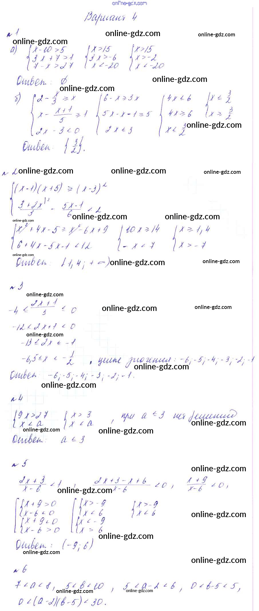 Готовые домашние задания по Алгебре за 8 класс Дидактические материалы Зив, Гольдич 2012 - СР №4. Системы неравенств Самостоятельные работы Вариант-4