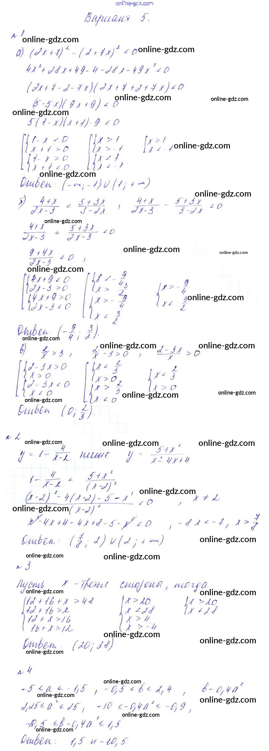 Готовые домашние задания по Алгебре за 8 класс Дидактические материалы Зив, Гольдич 2012 - СР №4. Системы неравенств Самостоятельные работы Вариант-5