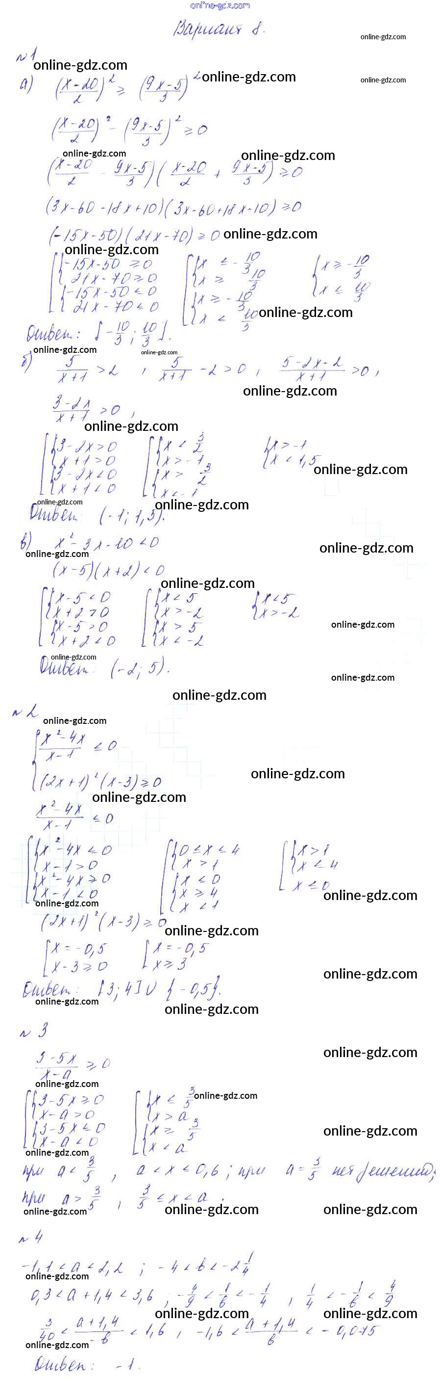 Готовые домашние задания по Алгебре за 8 класс Дидактические материалы Зив, Гольдич 2012 - СР №4. Системы неравенств Самостоятельные работы Вариант-8
