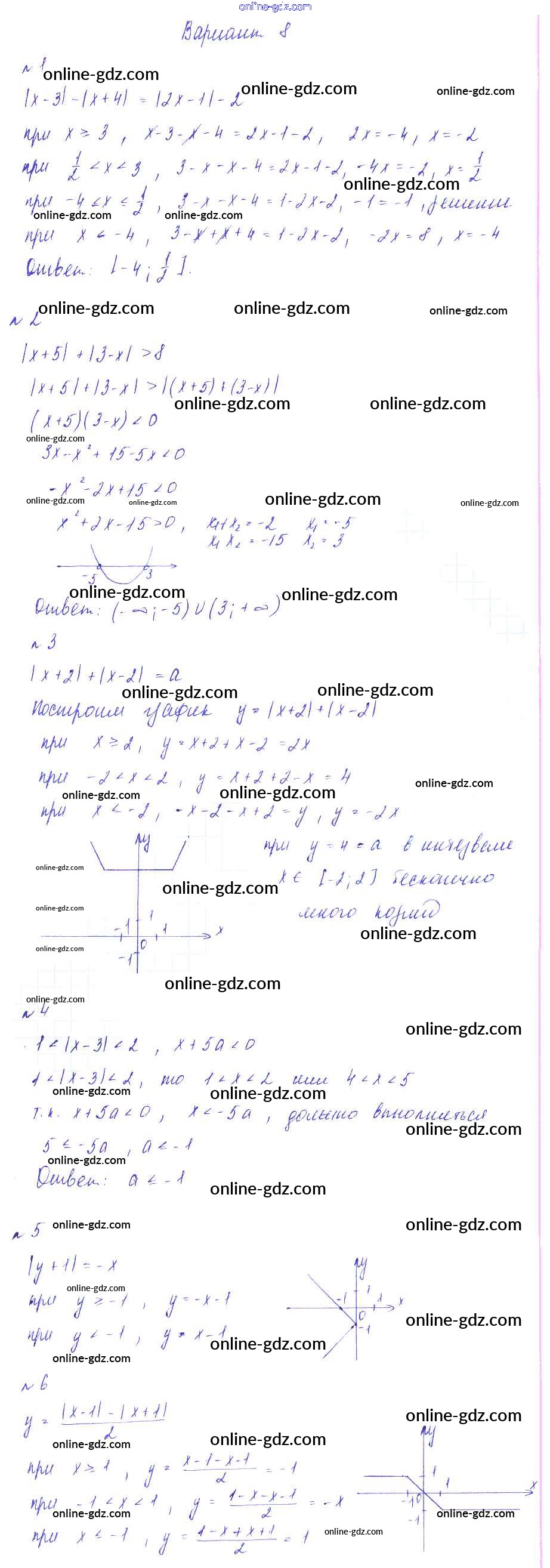 Готовые домашние задания по Алгебре за 8 класс Дидактические материалы Зив, Гольдич 2012 - СР №5.Модуль числа. Уравнения и неравенства, содержащие модуль Самостоятельные работы Вариант-8