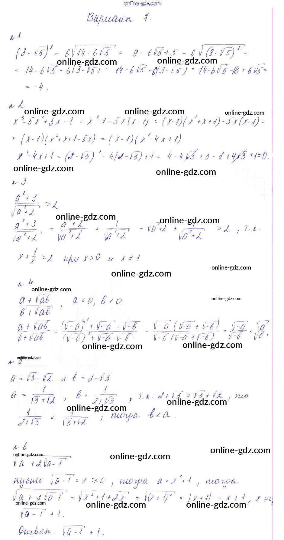 Готовые домашние задания по Алгебре за 8 класс Дидактические материалы Зив, Гольдич 2012 - СР №7. Квадратный корень из произведения и дроби Самостоятельные работы Вариант-7