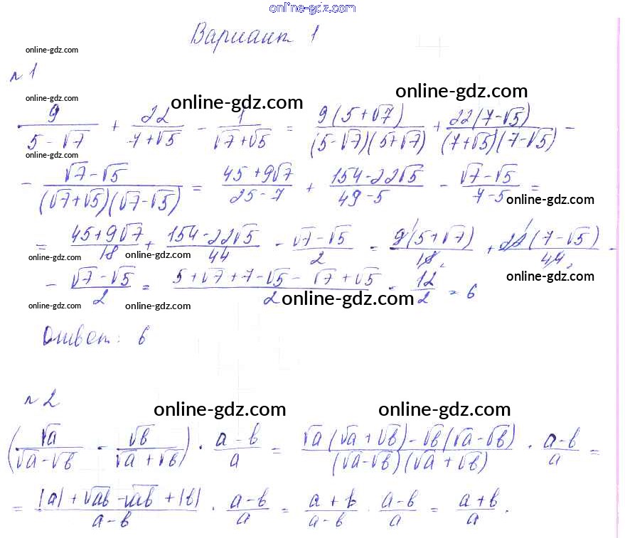 Готовые домашние задания по Алгебре за 8 класс Дидактические материалы Зив, Гольдич 2012 - СР №8. Упражнения на все действия с арифметическими корнями Самостоятельные работы Вариант-1