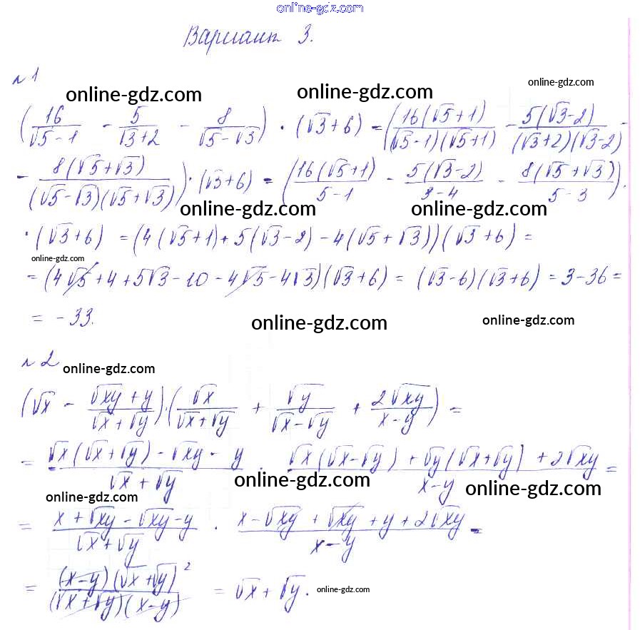 Готовые домашние задания по Алгебре за 8 класс Дидактические материалы Зив, Гольдич 2012 - СР №8. Упражнения на все действия с арифметическими корнями Самостоятельные работы Вариант-3