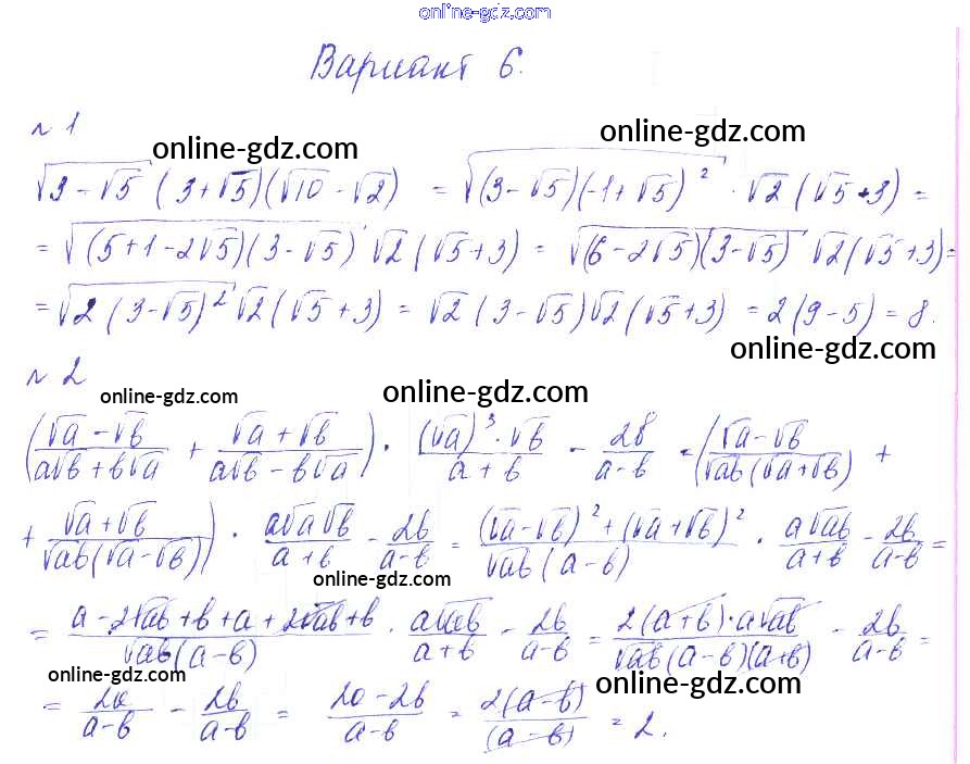 Готовые домашние задания по Алгебре за 8 класс Дидактические материалы Зив, Гольдич 2012 - СР №8. Упражнения на все действия с арифметическими корнями Самостоятельные работы Вариант-6