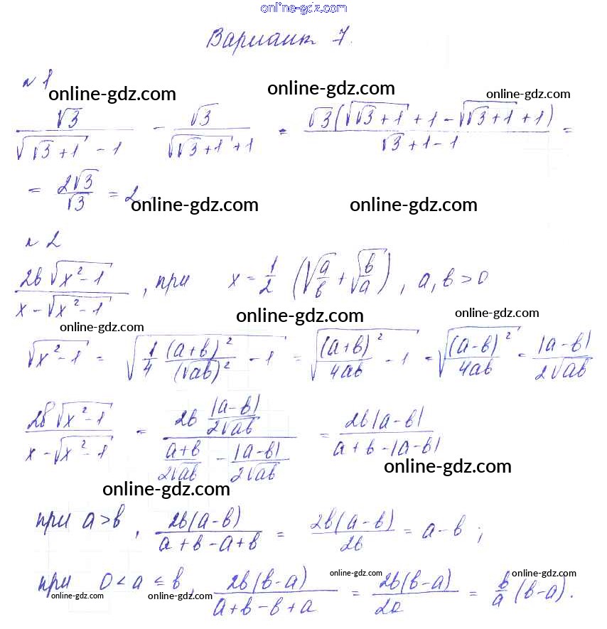 Готовые домашние задания по Алгебре за 8 класс Дидактические материалы Зив, Гольдич 2012 - СР №8. Упражнения на все действия с арифметическими корнями Самостоятельные работы Вариант-7