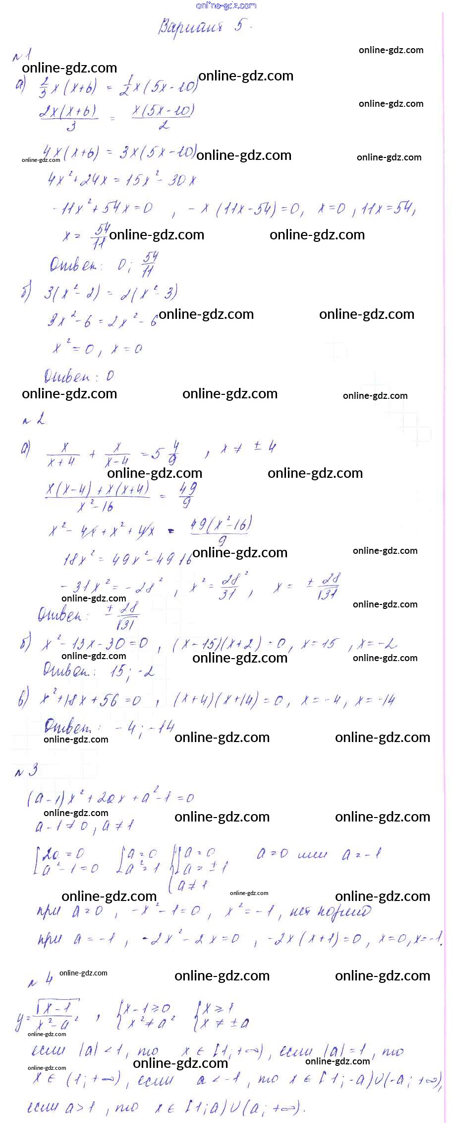 Готовые домашние задания по Алгебре за 8 класс Дидактические материалы Зив, Гольдич 2012 - СР №9. Неполные квадратные уравнения Самостоятельные работы Вариант-5
