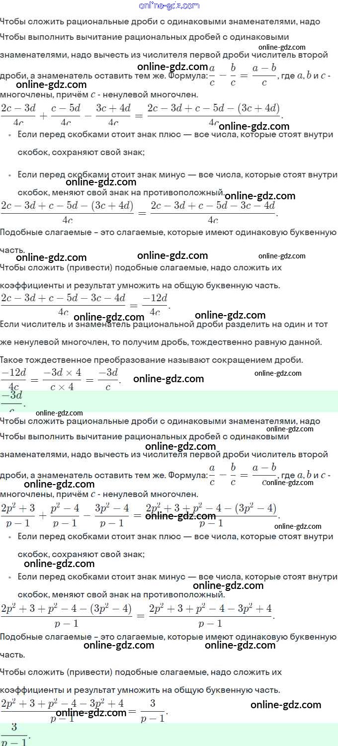 Готовые домашние задания по Алгебре за 8 класс Рабочая тетрадь Миндюк, Шлыкова УМК 2016 - §3. Сложение и вычитание дробей с одинаковыми знаменателями 3