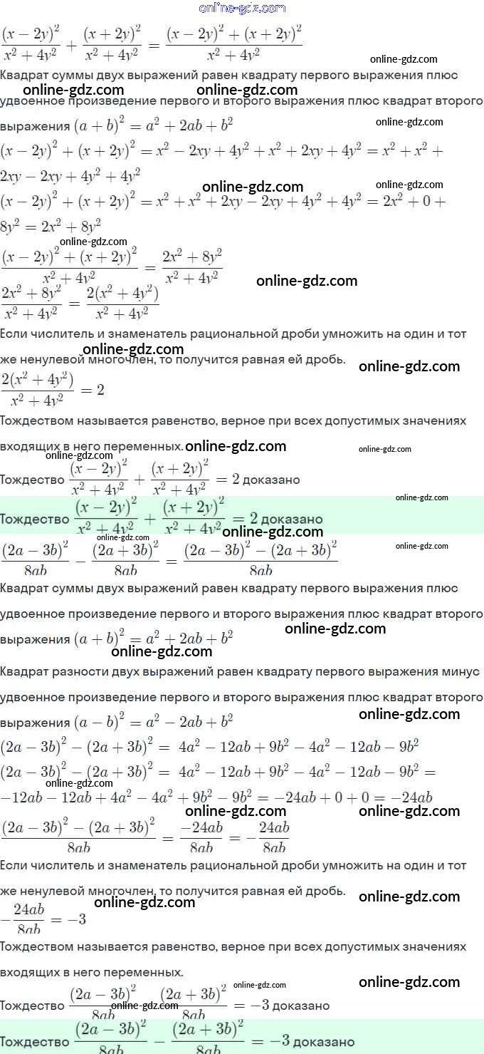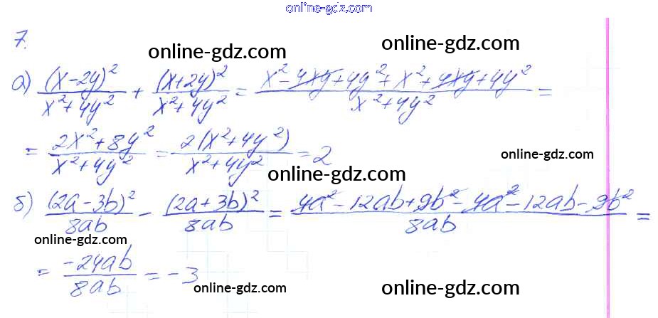 Готовые домашние задания по Алгебре за 8 класс Рабочая тетрадь Миндюк, Шлыкова УМК 2016 - §3. Сложение и вычитание дробей с одинаковыми знаменателями 7