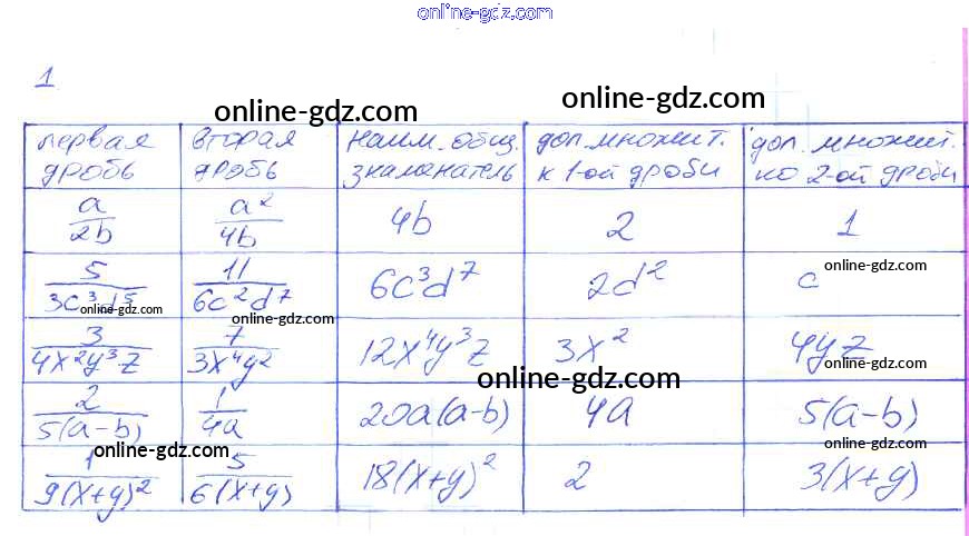 Готовые домашние задания по Алгебре за 8 класс Рабочая тетрадь Миндюк, Шлыкова УМК 2016 - §4. Сложение и вычитание дробей с разными знаменателями 1