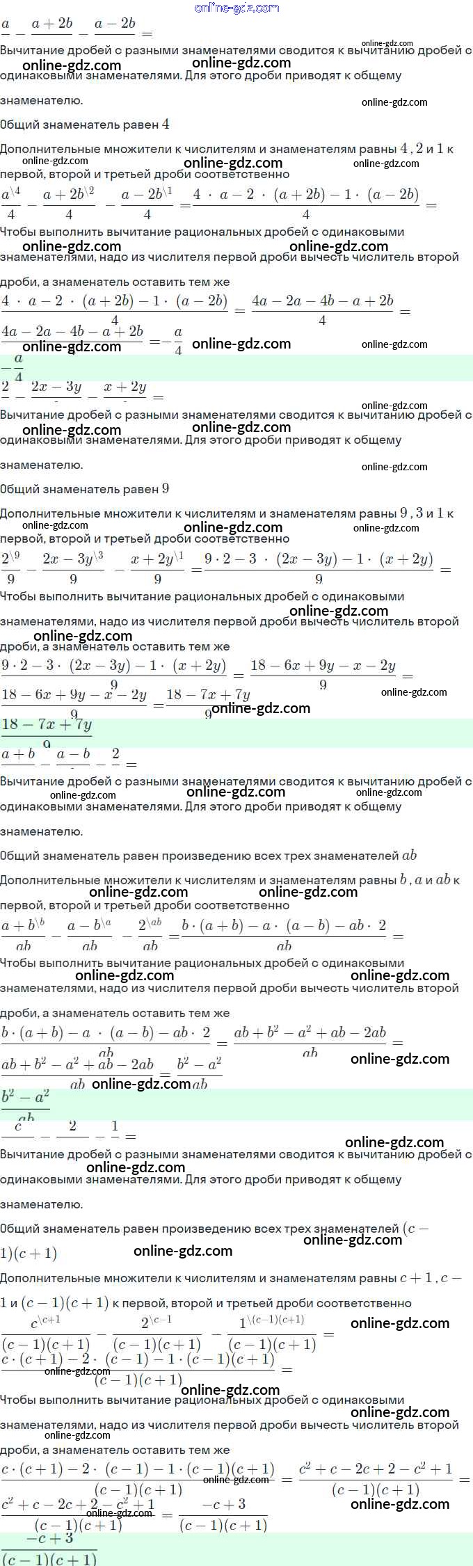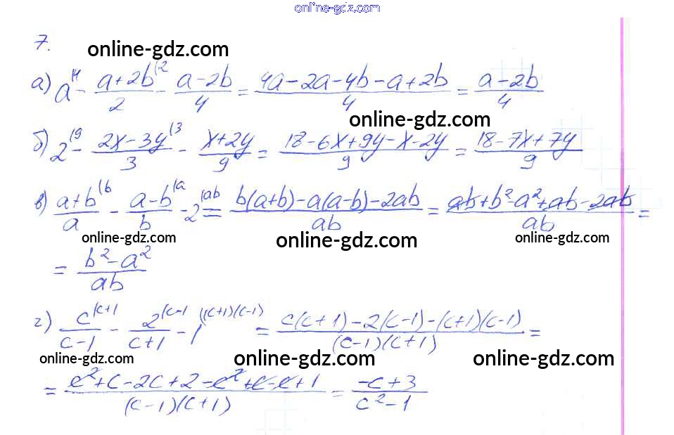 Готовые домашние задания по Алгебре за 8 класс Рабочая тетрадь Миндюк, Шлыкова УМК 2016 - §4. Сложение и вычитание дробей с разными знаменателями 7