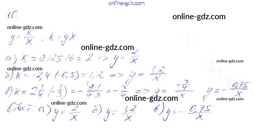 Готовые домашние задания по Алгебре за 8 класс Рабочая тетрадь Миндюк, Шлыкова УМК 2016 - §8. Функция y=k/x и её график 10