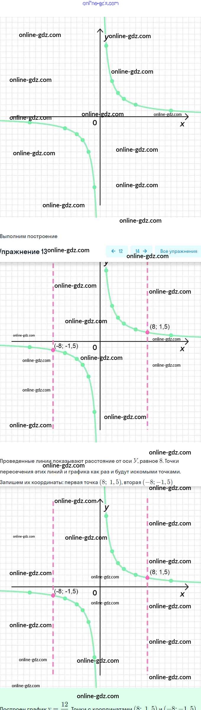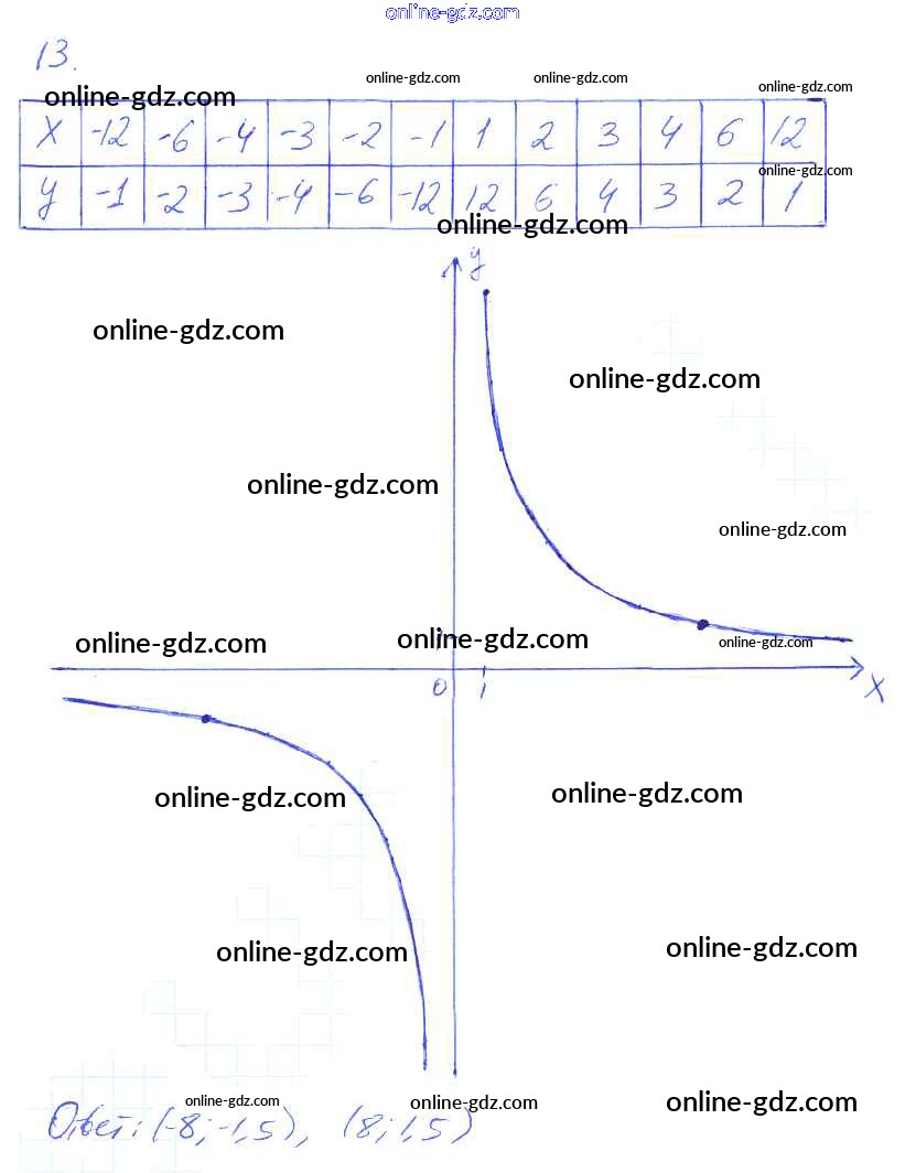 Готовые домашние задания по Алгебре за 8 класс Рабочая тетрадь Миндюк, Шлыкова УМК 2016 - §8. Функция y=k/x и её график 13