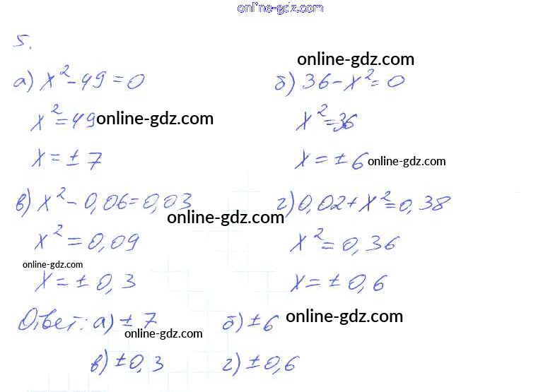 Готовые домашние задания по Алгебре за 8 класс Рабочая тетрадь Миндюк, Шлыкова УМК 2016 - §12. Уравнение x^2=a 5
