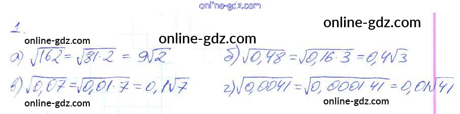 Готовые домашние задания по Алгебре за 8 класс Рабочая тетрадь Миндюк, Шлыкова УМК 2016 - §17. Вынесение множителя за знак корня. Внесение множителя под знак корня 1