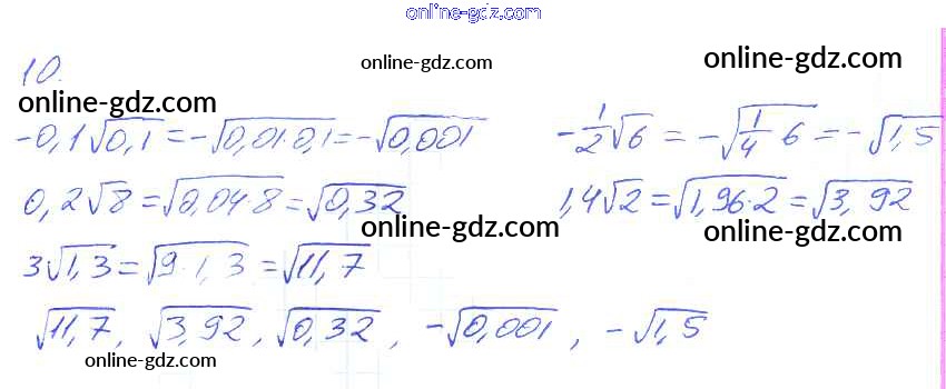 Готовые домашние задания по Алгебре за 8 класс Рабочая тетрадь Миндюк, Шлыкова УМК 2016 - §17. Вынесение множителя за знак корня. Внесение множителя под знак корня 10