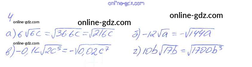 Готовые домашние задания по Алгебре за 8 класс Рабочая тетрадь Миндюк, Шлыкова УМК 2016 - §17. Вынесение множителя за знак корня. Внесение множителя под знак корня 4