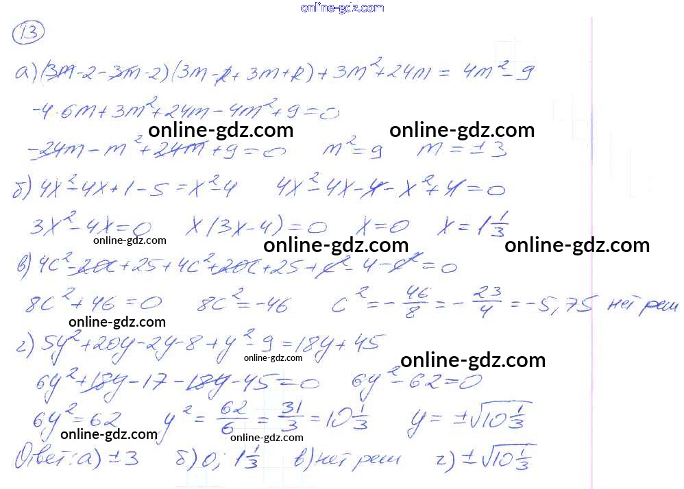 Готовые домашние задания по Алгебре за 8 класс Рабочая тетрадь Миндюк, Шлыкова УМК 2016 - §19. Неполные квадратные уравнения 13