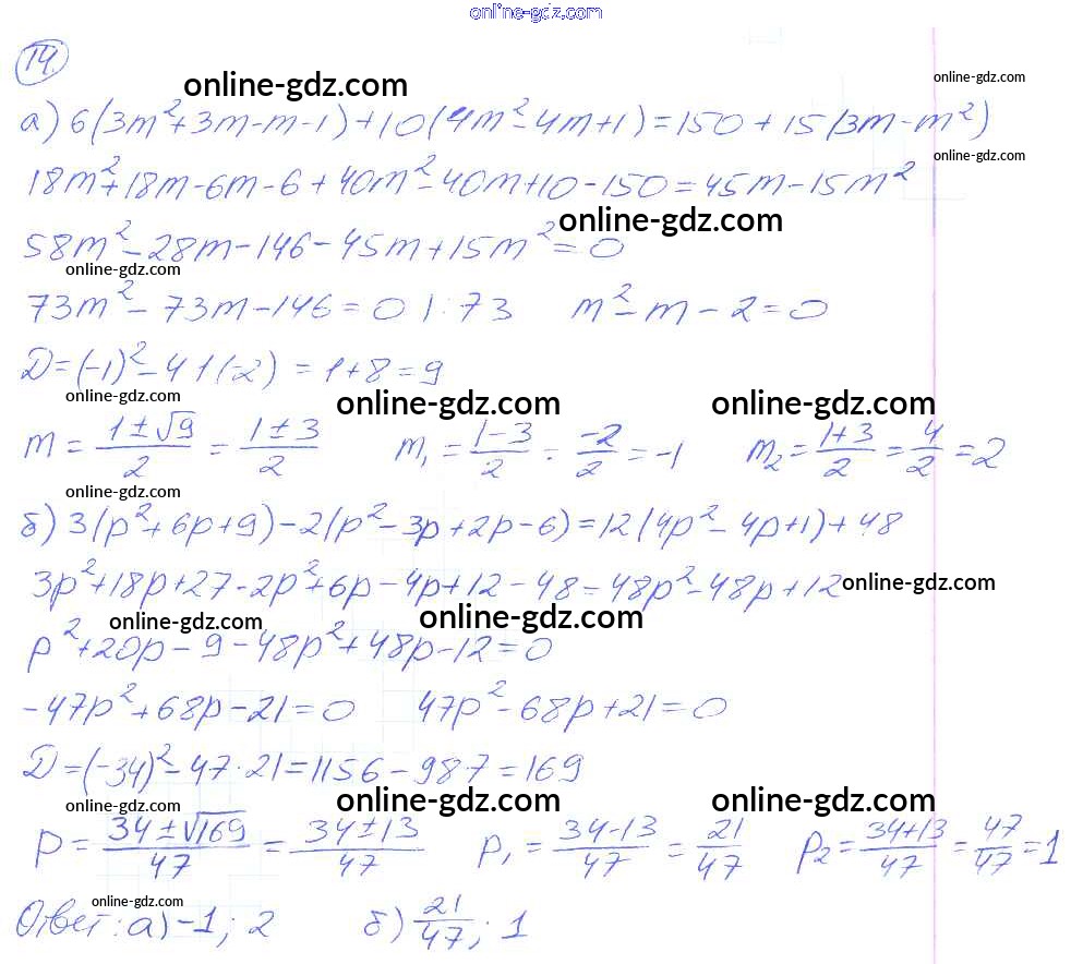 Готовые домашние задания по Алгебре за 8 класс Рабочая тетрадь Миндюк, Шлыкова УМК 2016 - §20. Формула корней квадратного уравнения 14