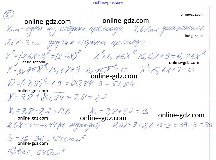 Готовые домашние задания по Алгебре за 8 класс Рабочая тетрадь Миндюк, Шлыкова УМК 2016 - §21. Решение задач с помощью квадратных уравнений 6