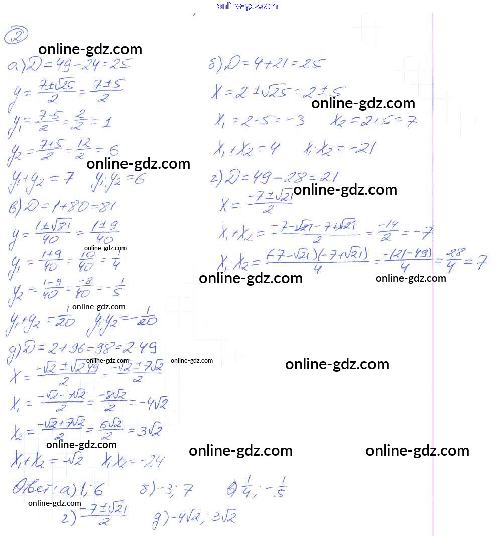 Готовые домашние задания по Алгебре за 8 класс Рабочая тетрадь Миндюк, Шлыкова УМК 2016 - §22. Теорема Виета 2