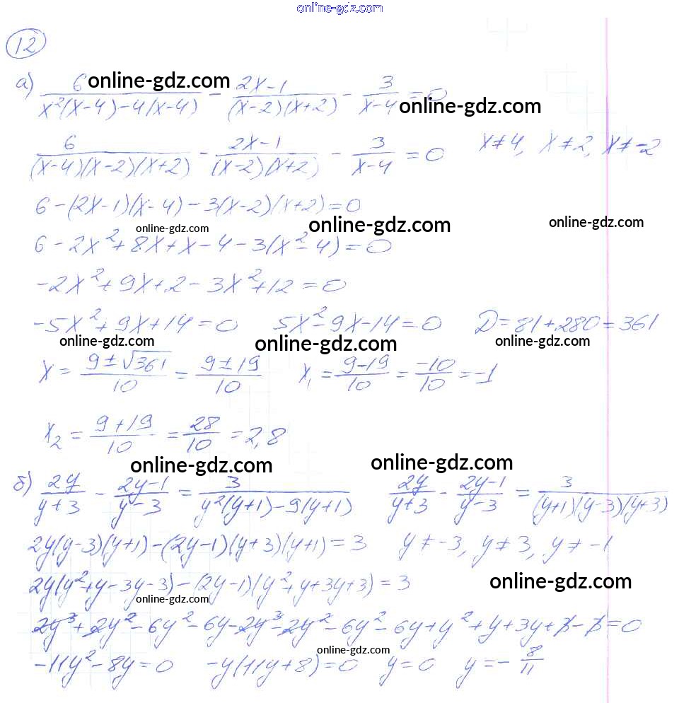 Готовые домашние задания по Алгебре за 8 класс Рабочая тетрадь Миндюк, Шлыкова УМК 2016 - §23. Решение дробных рациональных уравнений 12