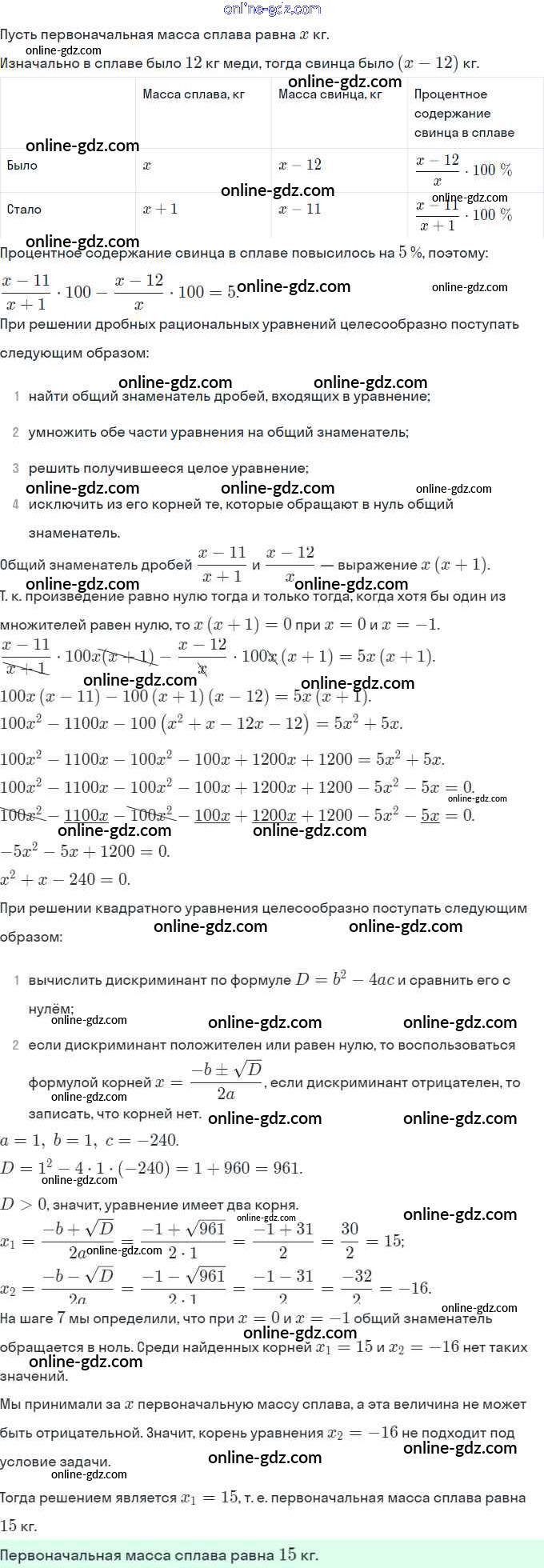 Готовые домашние задания по Алгебре за 8 класс Рабочая тетрадь Миндюк, Шлыкова УМК 2016 - §24. Решение задач с помощью рациональных уравнений 7
