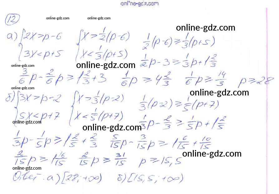 Готовые домашние задания по Алгебре за 8 класс Рабочая тетрадь Миндюк, Шлыкова УМК 2016 - §32. Решение систем неравенств с одной переменной 12
