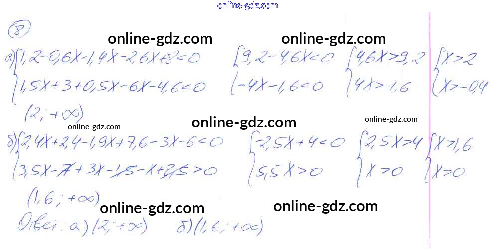 Готовые домашние задания по Алгебре за 8 класс Рабочая тетрадь Миндюк, Шлыкова УМК 2016 - §32. Решение систем неравенств с одной переменной 8