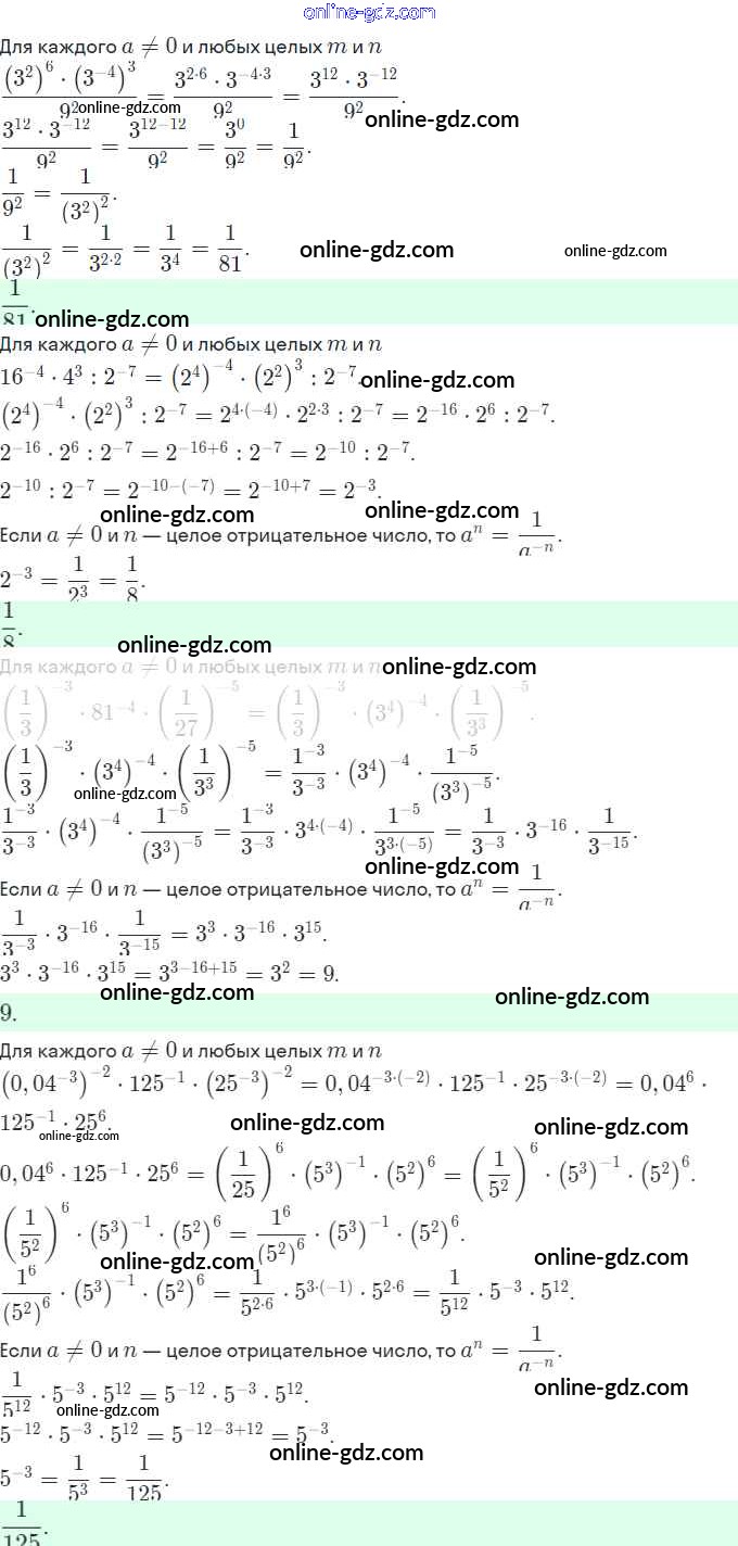 Готовые домашние задания по Алгебре за 8 класс Рабочая тетрадь Миндюк, Шлыкова УМК 2016 - §34. Свойства степени с целым показателем 3