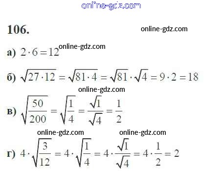 Готовые домашние задания по Алгебре за 8 класс Рабочая тетрадь Минаева, Рослова 2017 - Упражнения 106