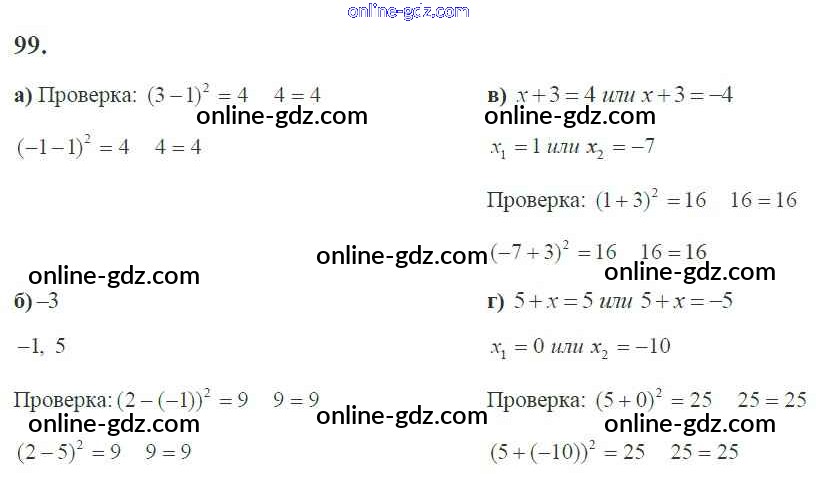 Готовые домашние задания по Алгебре за 8 класс Рабочая тетрадь Минаева, Рослова 2017 - Упражнения 99