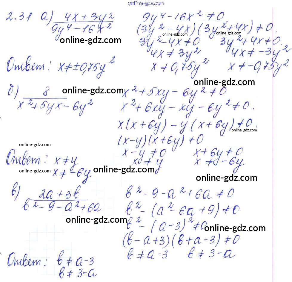 Готовые домашние задания по Алгебре за 8 класс Сборник задач Галицкий, Гольдман 2019 - §2. Рациональные дроби 2.31