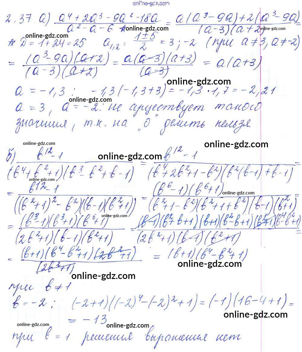 Готовые домашние задания по Алгебре за 8 класс Сборник задач Галицкий, Гольдман 2019 - §2. Рациональные дроби 2.37