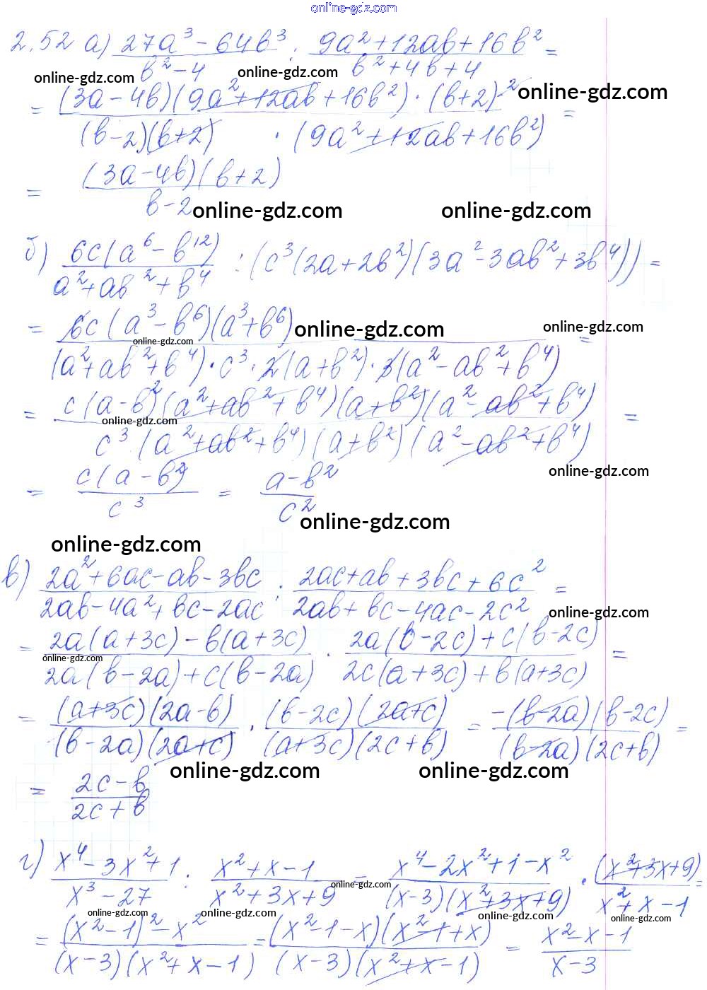 Готовые домашние задания по Алгебре за 8 класс Сборник задач Галицкий, Гольдман 2019 - §2. Рациональные дроби 2.52