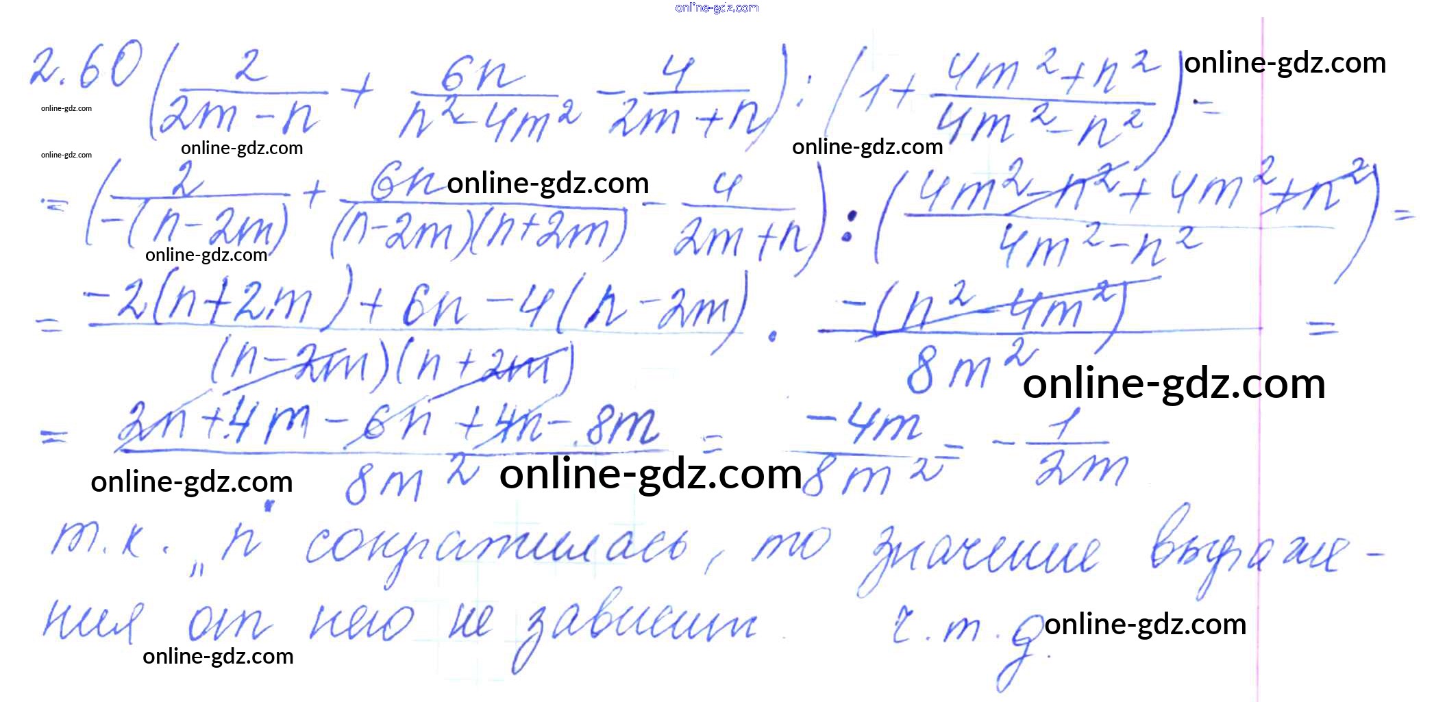 Готовые домашние задания по Алгебре за 8 класс Сборник задач Галицкий, Гольдман 2019 - §2. Рациональные дроби 2.60