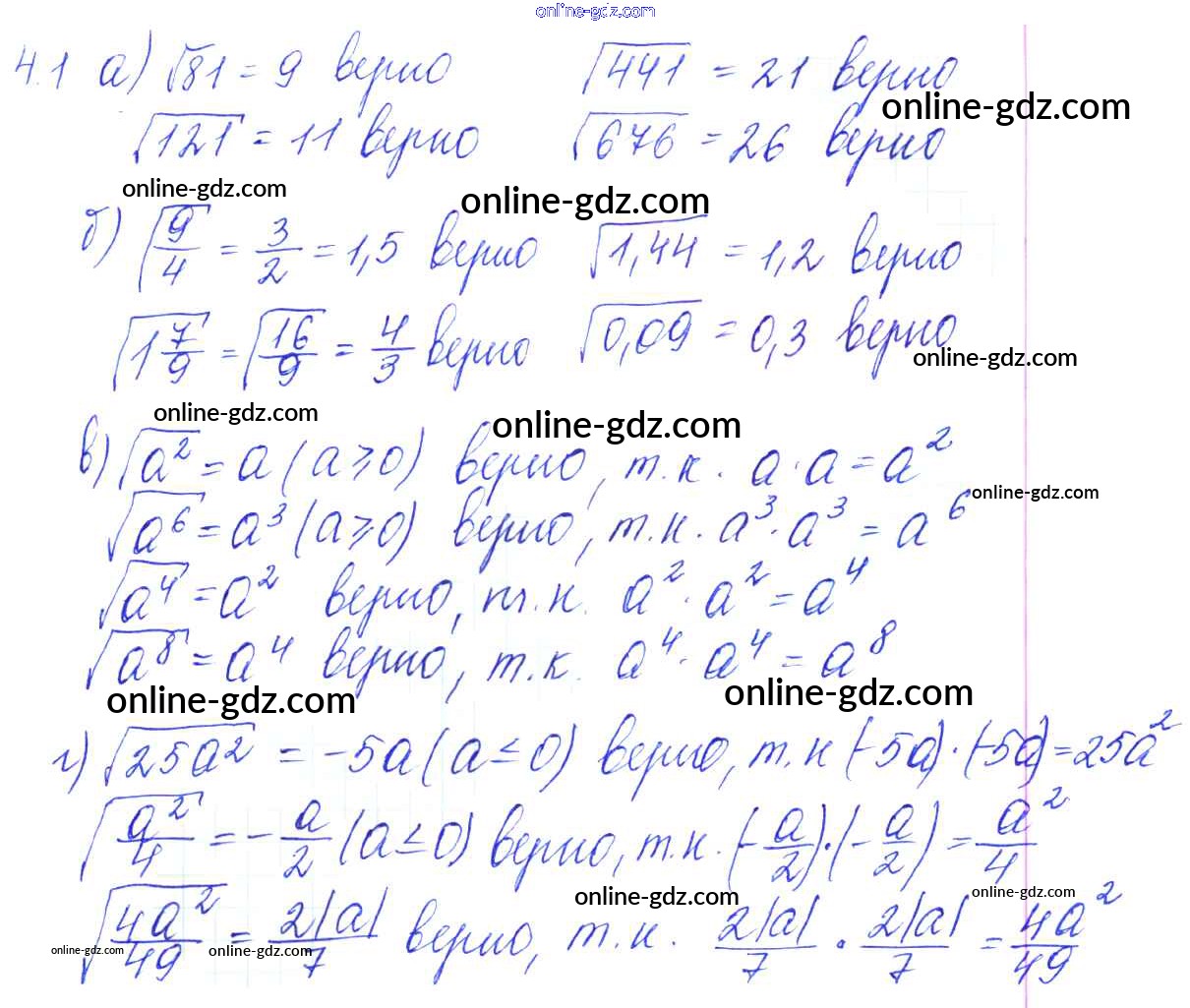 Готовые домашние задания по Алгебре за 8 класс Сборник задач Галицкий, Гольдман 2019 - §4. Квадратные корни 4.1