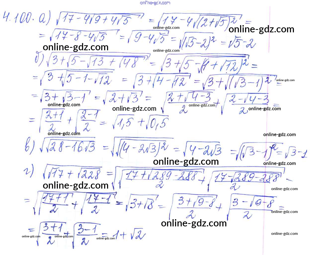 Готовые домашние задания по Алгебре за 8 класс Сборник задач Галицкий, Гольдман 2019 - §4. Квадратные корни 4.100