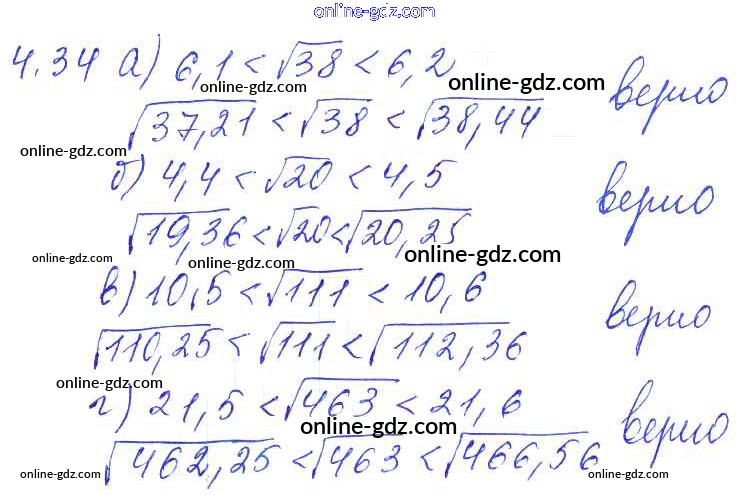 Готовые домашние задания по Алгебре за 8 класс Сборник задач Галицкий, Гольдман 2019 - §4. Квадратные корни 4.34