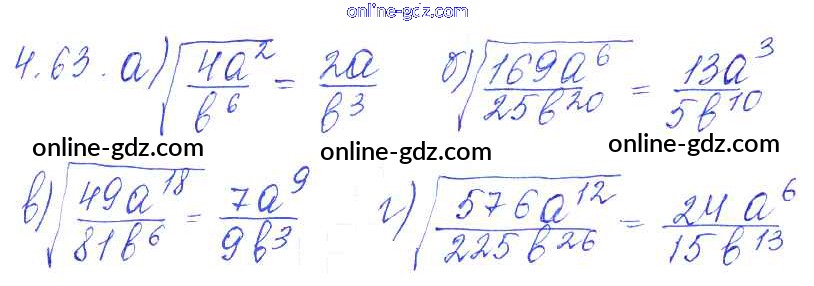 Готовые домашние задания по Алгебре за 8 класс Сборник задач Галицкий, Гольдман 2019 - §4. Квадратные корни 4.63