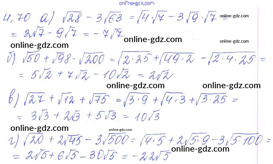 Готовые домашние задания по Алгебре за 8 класс Сборник задач Галицкий, Гольдман 2019 - §4. Квадратные корни 4.70