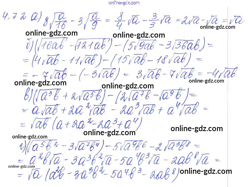 Готовые домашние задания по Алгебре за 8 класс Сборник задач Галицкий, Гольдман 2019 - §4. Квадратные корни 4.72