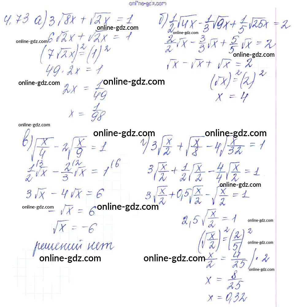 Готовые домашние задания по Алгебре за 8 класс Сборник задач Галицкий, Гольдман 2019 - §4. Квадратные корни 4.73