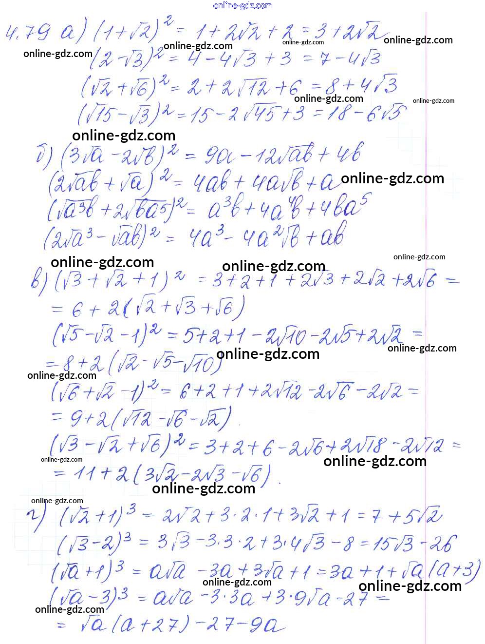 Готовые домашние задания по Алгебре за 8 класс Сборник задач Галицкий, Гольдман 2019 - §4. Квадратные корни 4.79