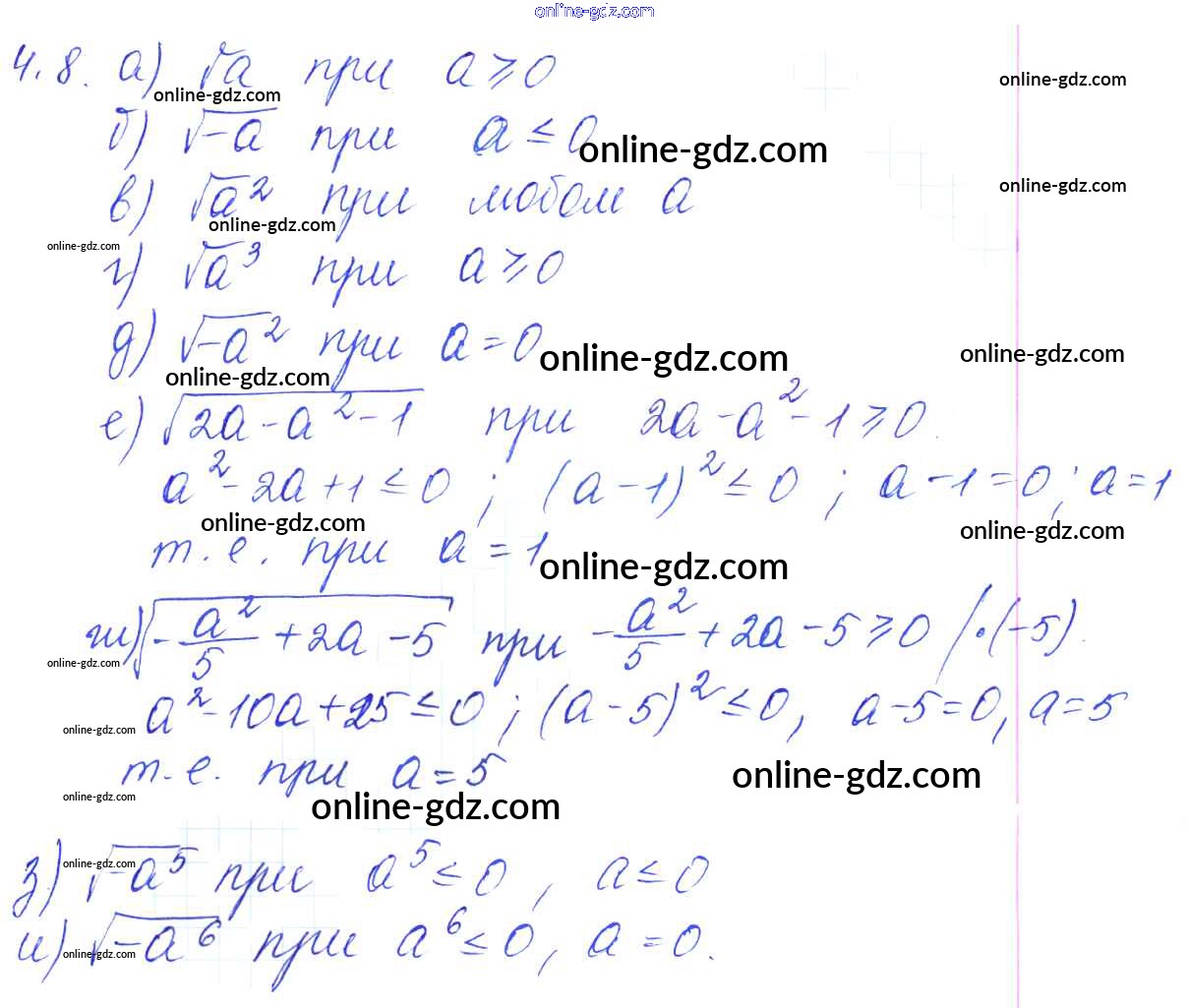 Готовые домашние задания по Алгебре за 8 класс Сборник задач Галицкий, Гольдман 2019 - §4. Квадратные корни 4.8